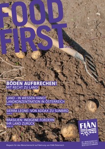 Zugang zu Land und anderen natürlichen Ressourcen ist eine wichtige Voraussetzung für das Recht auf Nahrung. Land, Wasser und Saatgut dürfen nicht der Kontrolle der Konzerne überlassen werden, denn wer sie kontrolliert, bestimmt was auf unseren Tellern landet. Doch leider nimmt die Macht- und Marktkonzentration weiter zu. Auch Land konzentriert sich immer mehr in den Händen weniger – das auch in Österreich. FIAN veranstaltete daher das erste Land-Forum für Ernährungssouveränität mit und forderte unter dem Motto „Böden aufbrechen!“ ein Umdenken in der Landpolitik. Es vernetzten sich Initiativen aus ganz Österreich und tauschten sich mit ihren Kolleg_innen aus den Niederlanden, dem Baskenland, Frankreich und Deutschland aus. Neue Synergien sind entstanden und Projekte auf dem Weg – der Wandel von unten hat längst begonnen. Mehr zur Landverteilung in Österreich sowie Projekten, die sich der Landkonzentration widersetzen, in unserem Schwerpunkt ab Seite 2.