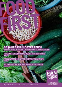 Eine Zeitleiste der Laufbahn von FIAN Österreich ermöglicht eine kleine Reise in unser Gründungsjahr, und gibt Einblick in die Erfolgsgeschichten und Erlebnisse unserer Zusammenarbeit im Kampf gegen Hunger, von 1989 bis 2019. Natürlich wollen wir trotz der Feierlichkeiten unsere politischen Kämpfe nicht außer Acht lassen. Hunger ist und bleibt weiterhin ein schwerwiegendes, globales Problem, besonders im Hinblick auf kommende klimatische Veränderungen, und erfordert unsere Aufmerksamkeit. 40% der Bevölkerung in Sambia sind noch heute von Unterernährung betroffen. In einem Interview mit Gertrude Falk, von FIAN Deutschland, erklärt Archie Mulanda, von FIAN Sambia, die aktuelle menschenrechtliche Situation in Sambia und den Einfluss des Klimawandels auf den Nahrungsmangel vorort. Das FOODFirst bringt uns auch wieder nach Sierra Leone, wo die europäische Firma Socfin seit 2011 große Teile des Landes aufkauft. 18.000 Hektar Land hat Socfin bereits für industrielle Palmölplantagen im Süden von Sierra Leone erstanden. Die Flächen betreffen zum Teil auch bereits bewirtschaftete Gebiete von umliegenden Kleinbäuer*innen vor Ort., die die Zerstörung ihrer Lebensgrundlagen beklagen. Die Konflikte zwischen Gemeinden, Behörden und Socfin erreichen in letzter Zeit neue Höhen, FIAN Deutschland berichtet. Seit 2014 unterstützt FIAN das „UN-Treaty“, ein Abkommen, das transnationale Konzerne zur Einhaltung der Menschenrechte zwingt. Mitte Oktober fanden Verhandlungen darüber im UN-Menschenrechtsrat in Genf statt, Melanie Oßberger von FIAN Österreich war vor Ort. Weiters freuen wir uns mit Anna Wagner ein neues Mitglied in unserem Team begrüßen zu dürfen und hoffen unser langes Bestehen gemeinsam am 29. 11. 2019 bei der 30 Jahr Feier von FIAN Österreich gemeinsam mit Ihnen zu feiern.